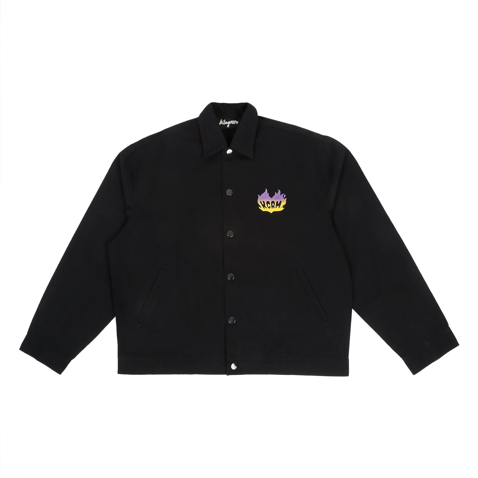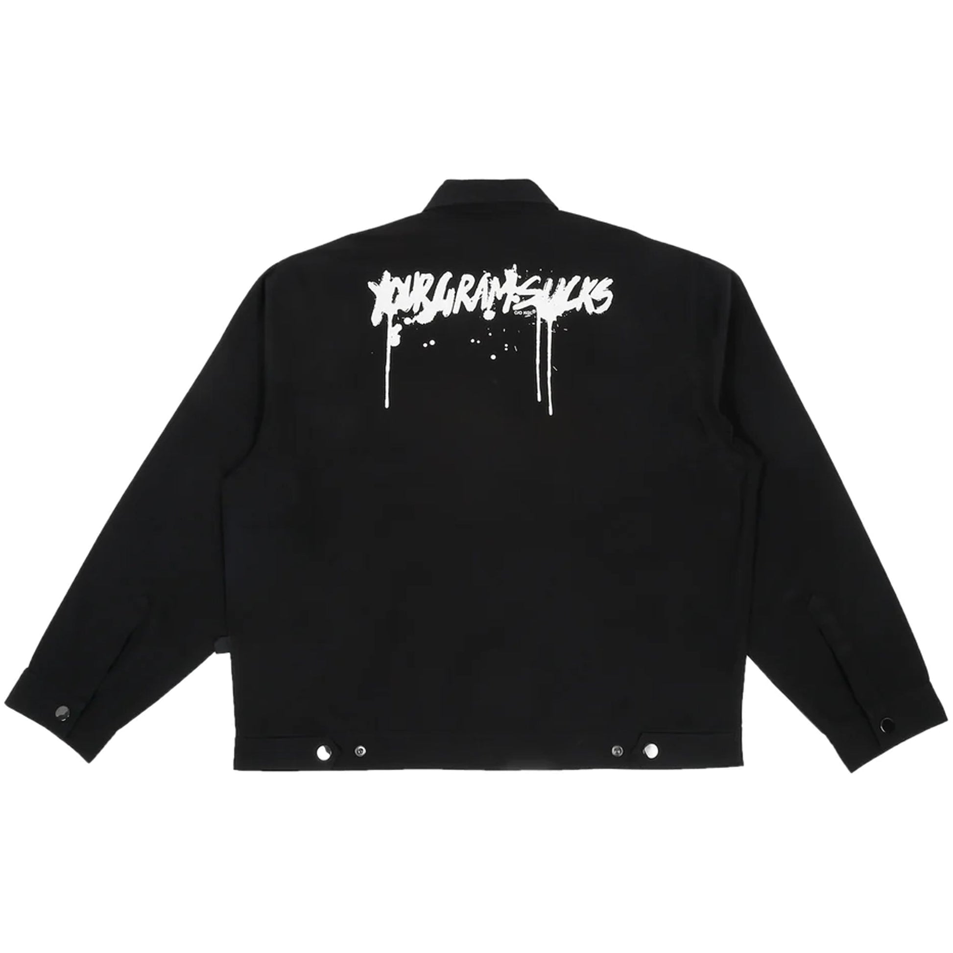 ‘Your Gram Sucks’ cotton twill shacket in black colour.
